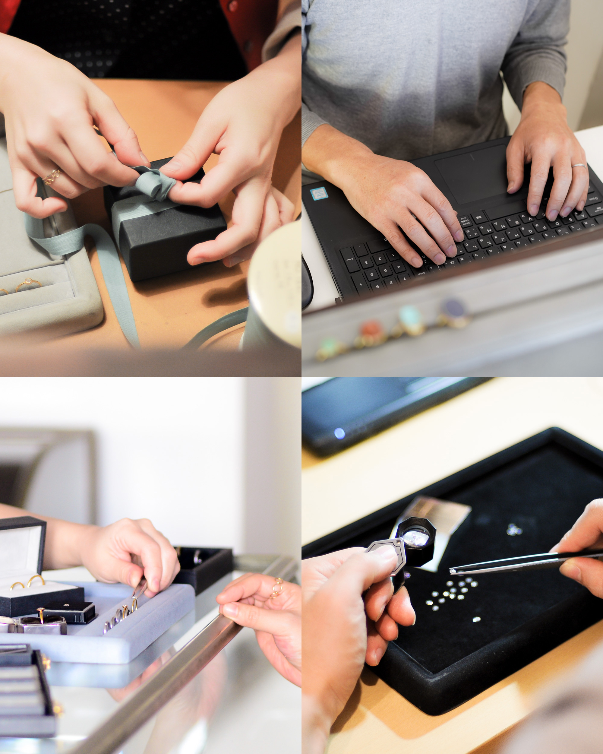 ジュエリーの販売にとどまらず、幅広い領域に関わっていただきます。「少人数だからこそ、販売だけでなく企画や仕入れにも関わりたい」という方にとって、幅広い経験ができる環境です。
