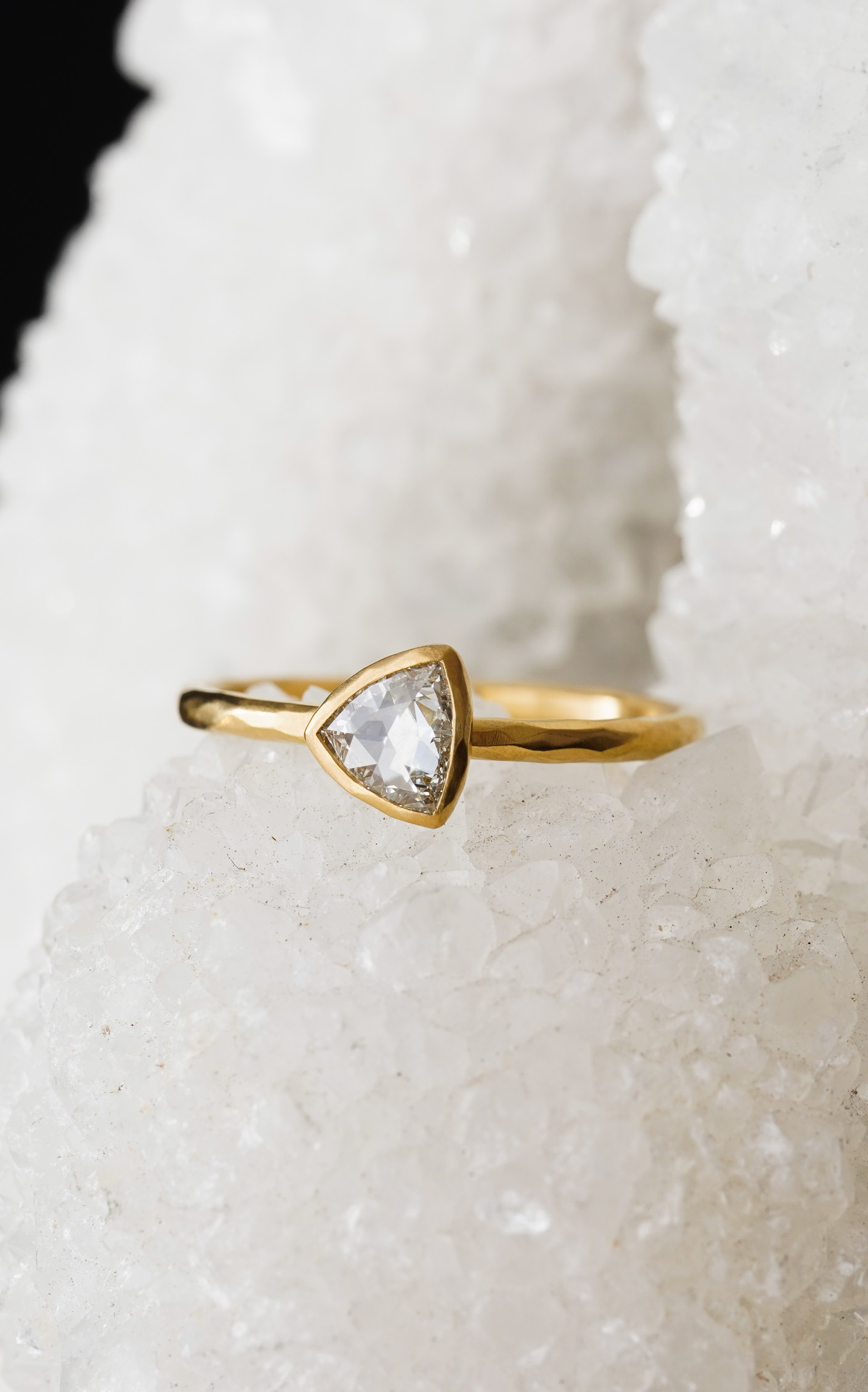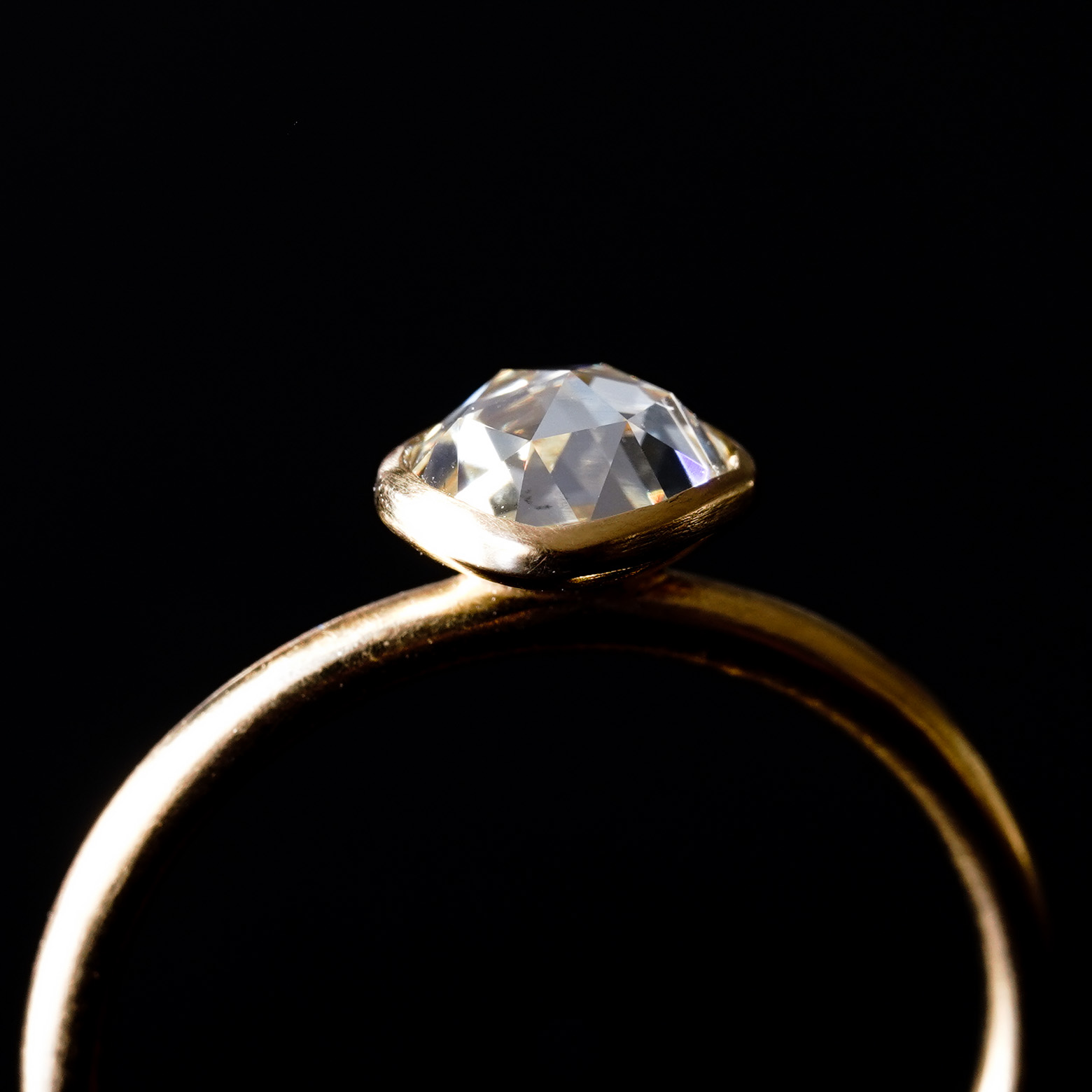 22kt Gold Classic Engagement Ring Hammered 0.24ct Hexagon Rosecut Diamond