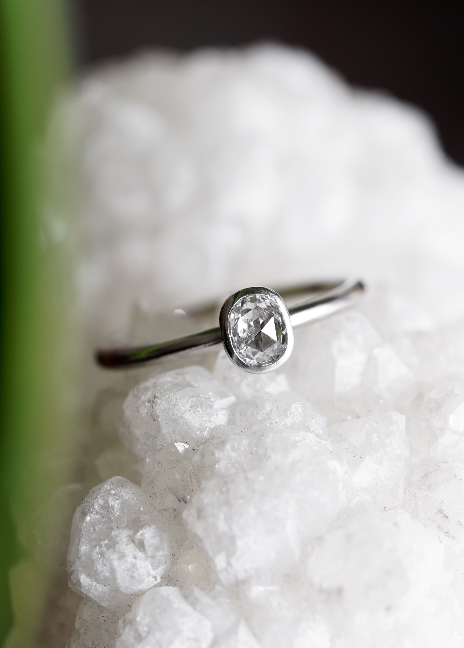 Platinum Classic Engagement Ring Plain 0.41ct Oval Rosecut Diamond