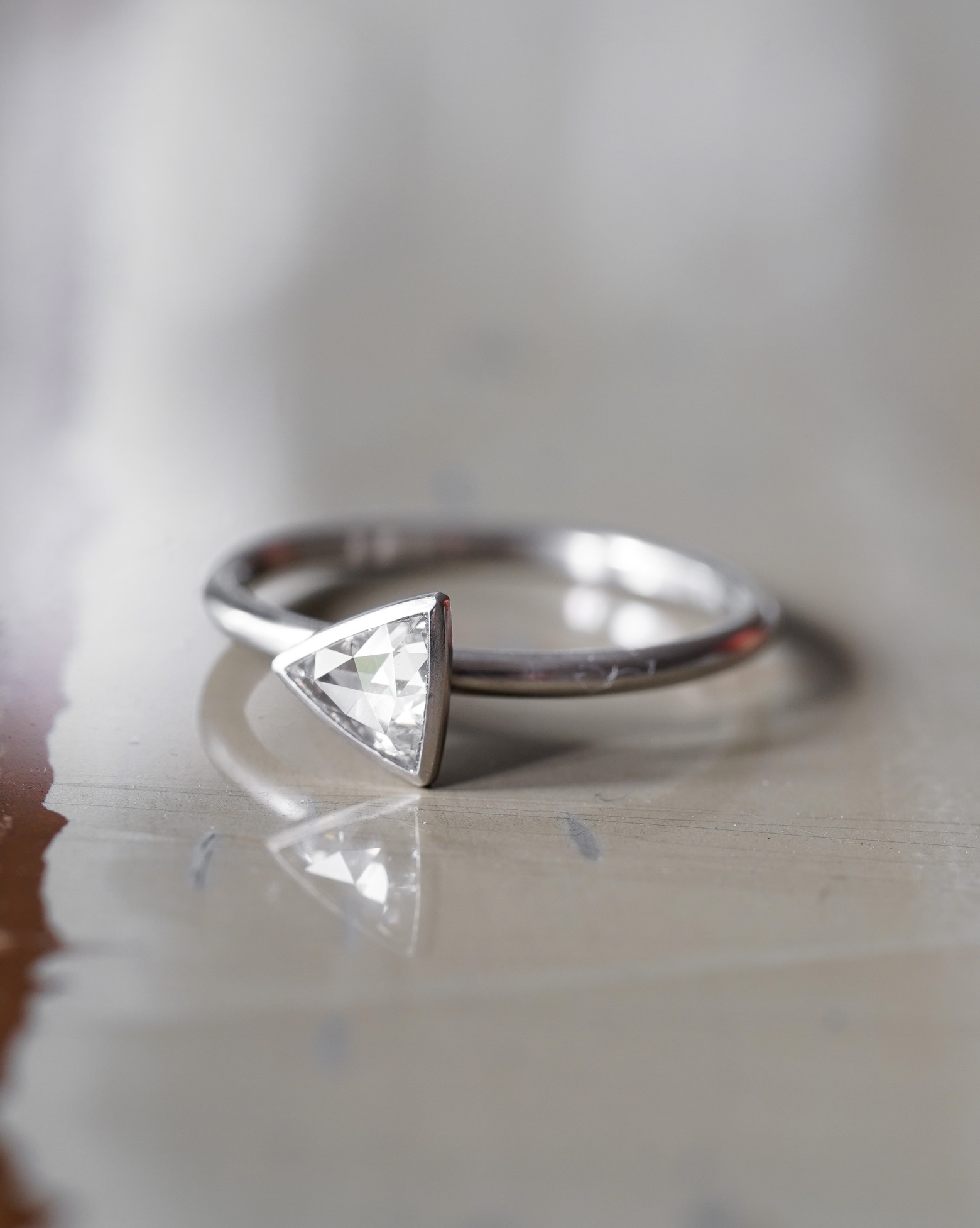 Platinum Classic Engagement Ring Plain 0.27ct Triangle Rosecut Diamond