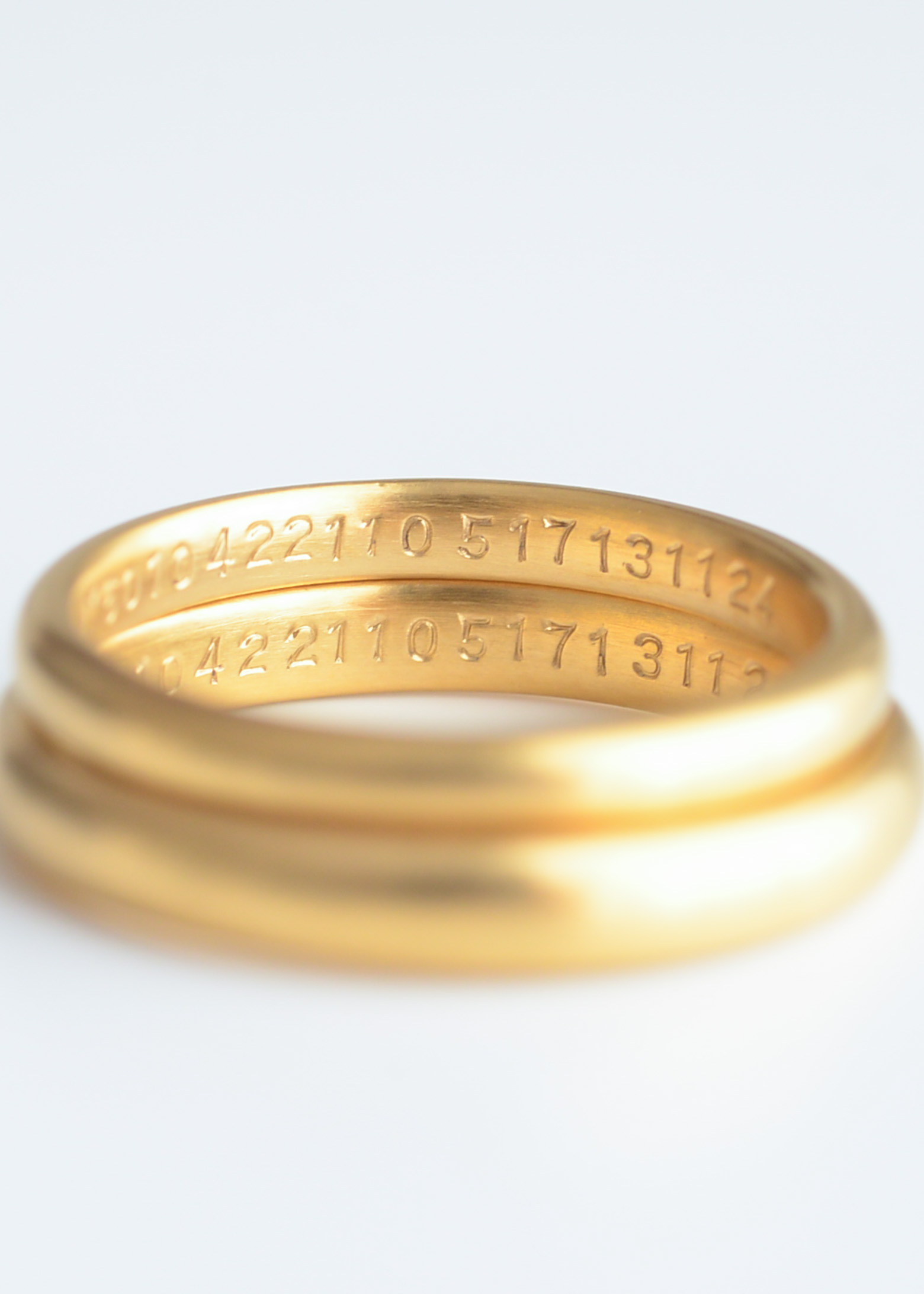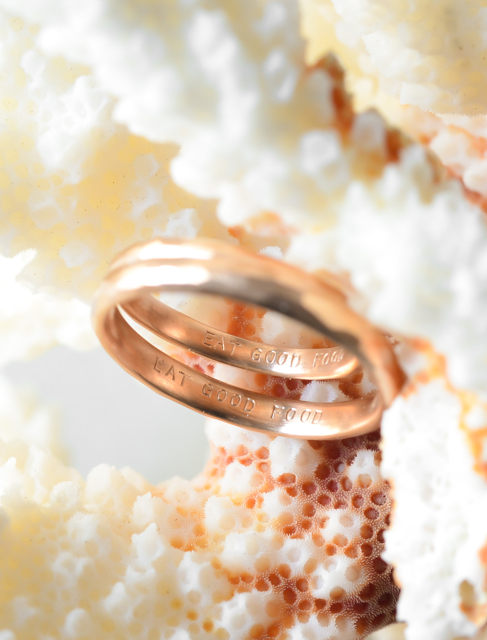 「EAT GOOD FOOD」 Men's 18kt Pink Gold Classic Marriage Ring Hammered Lady's 18kt Pink Gold Classic Marriage Ring Hammered