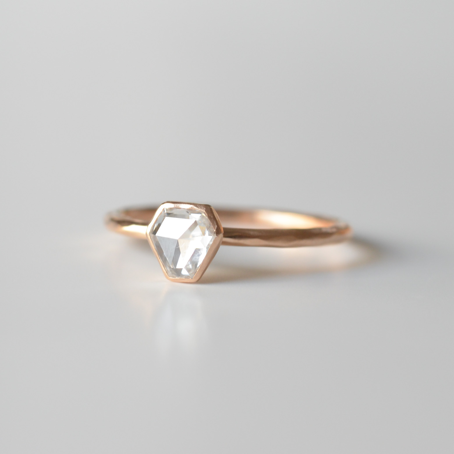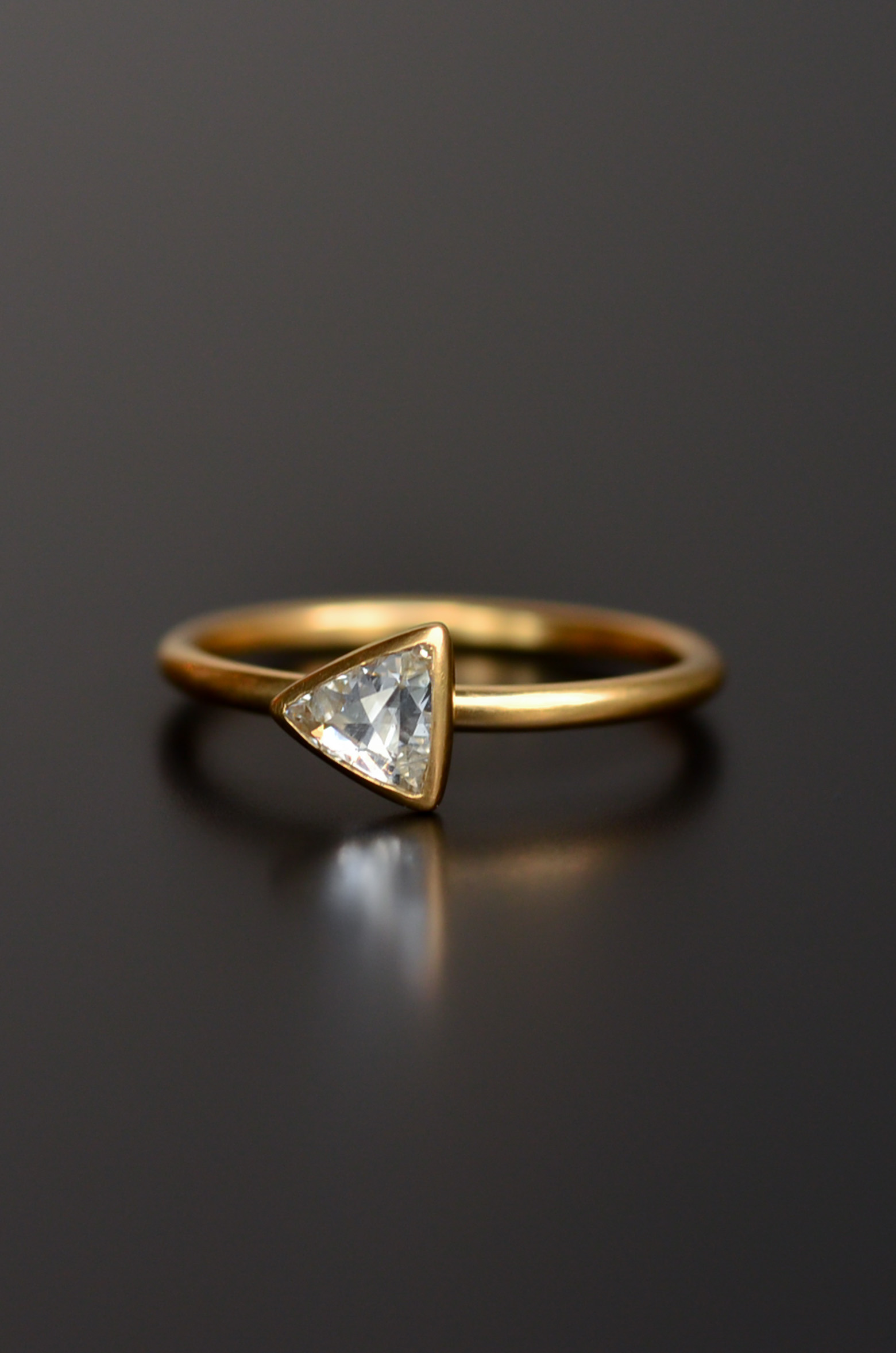 22kt Gold Classic Engagement Ring Plain 0.27ct Triangle Rosecut Diamond